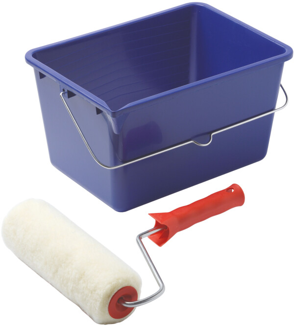 Praktisk sett med rulle, rulleskaft og firktantet spann med riller. Rullen har tykk 22 mm luv med høyt malingsopptak. Settet er ideelt når store flater skal males.