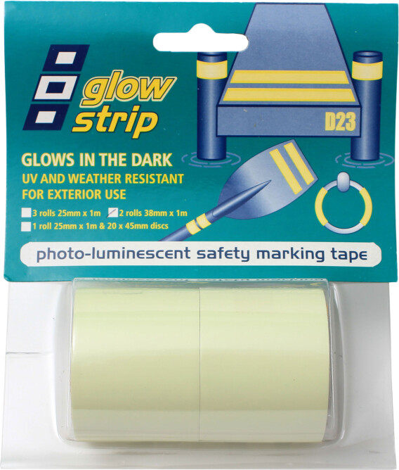 Tapen er laget av duk som er svært UV- og værbestandig, noe som gjør den spesielt egnet til bruk utendørs. Den passer perfekt til bruk på f.eks. utriggere/påler ved fortøyningsplass, på jolla eller andre objekter du ønsker å finne igjen eller plasser som trenger markering i mørket. Kan med fordel brukes innendørs på stiger og trapper i mørke boder, loft eller kabiner, hvor bevegelsessikkerhet er en prioritet.Dim: 38 mm x 1 m