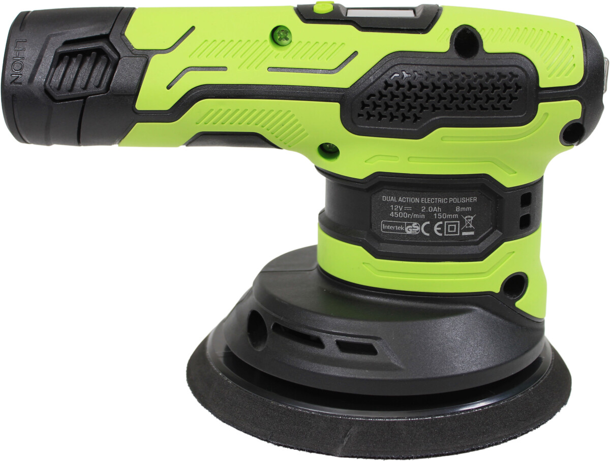 1852 Poleringsmaskin med 12V batteri gjør det mulig å polere uten tilgang på 220V strøm. Du slipper også den irriterende ledningen, som alltid er i veien. Poleringsmaskinen er 6 mm oscillerende, og gir et svært godt resultat. Den har LED-display, og justerbar hastighet på 2000-4500 omdreininger. Den leveres med to batterier og lader.Maskinen kan brukes med standard poleringsputer på 150 mm. Den leveres med tre forskjellige puter.