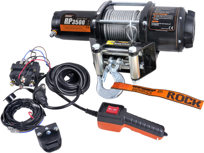 Rock RP3500 er en brukervennlig elektrisk vinsj tilpasset maritimt bruk. Den egner seg godt til båttilhengere og små slipper. Motoren kan kjøres i begge retninger. Vinsjen kan også frikobles. Vinsjen leveres med kablet fjernkontroll. Trådløs fjernkontroll finnes som tilbehør.Vinsjen fungerer utmerket med 1852 60 eller 74 Ah 12V-batterier (prod.nr. 1041950 og 1041951)