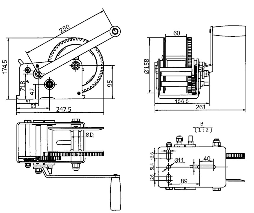 Rock RGW1800 er en kraftig vinsj med to forskjellige utvekslinger. De to girene sørger for at vi sveiver lett i alle situasjoner. Du velger gir etter hvor du plasserer vinsjhendelen.Vinsjen har manuell brems som kan blokkere i begge retninger, og settes i nøytral frislippsposisjon.