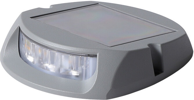 Pen lampe som kan monteres på brygge, platting, trapp eller på veggen. Lyset lyser i én retning, og kan gi et stemingsfullt preg. Lampen har LED-lærer og innebygget solcellepanel, som lader batteriet på dagtid. Lyset starter automatisk når det blir mørkt.