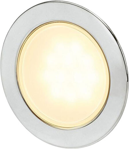 Hella Marine Slim EuroLed 95 er en flott downlight med svært lav profil. Det frostede lampeglasset og varmhvitt lys, skaper en behagelig atmosfære i båten.