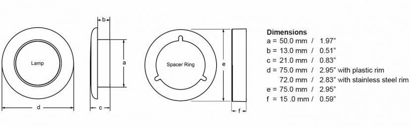 - Velg mellom hvit plastring eller ring i blankpolert syrefast stål