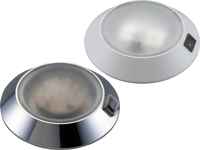 Lampe "Dag/Natt" 12V med hus i plast og linse i polykarbonat. Lampen har 15 hvite og 5 røde LED for dag- og nattfunksjon. Leveres med eller uten beskyttelse/trekk på bryteren.
