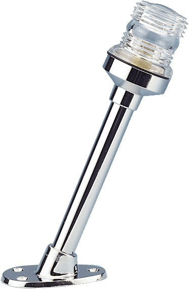 Rundtlysende lanterne på mast i forkrommet messing. Toppmontert. Passer til LED pære 1011424.