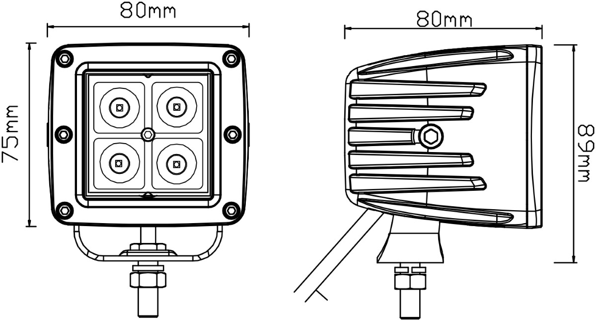 Dekkslyset er CE, R10 og RoHS sertifisert og har IP67 og IP69K gradering. Dette vil si at dekkslyset er helt støvtett og vanntett, selv mot vann med høyt trykk og temperaturer opp til 80 grader celsius.- 4 stk 3W CREE LED pærer