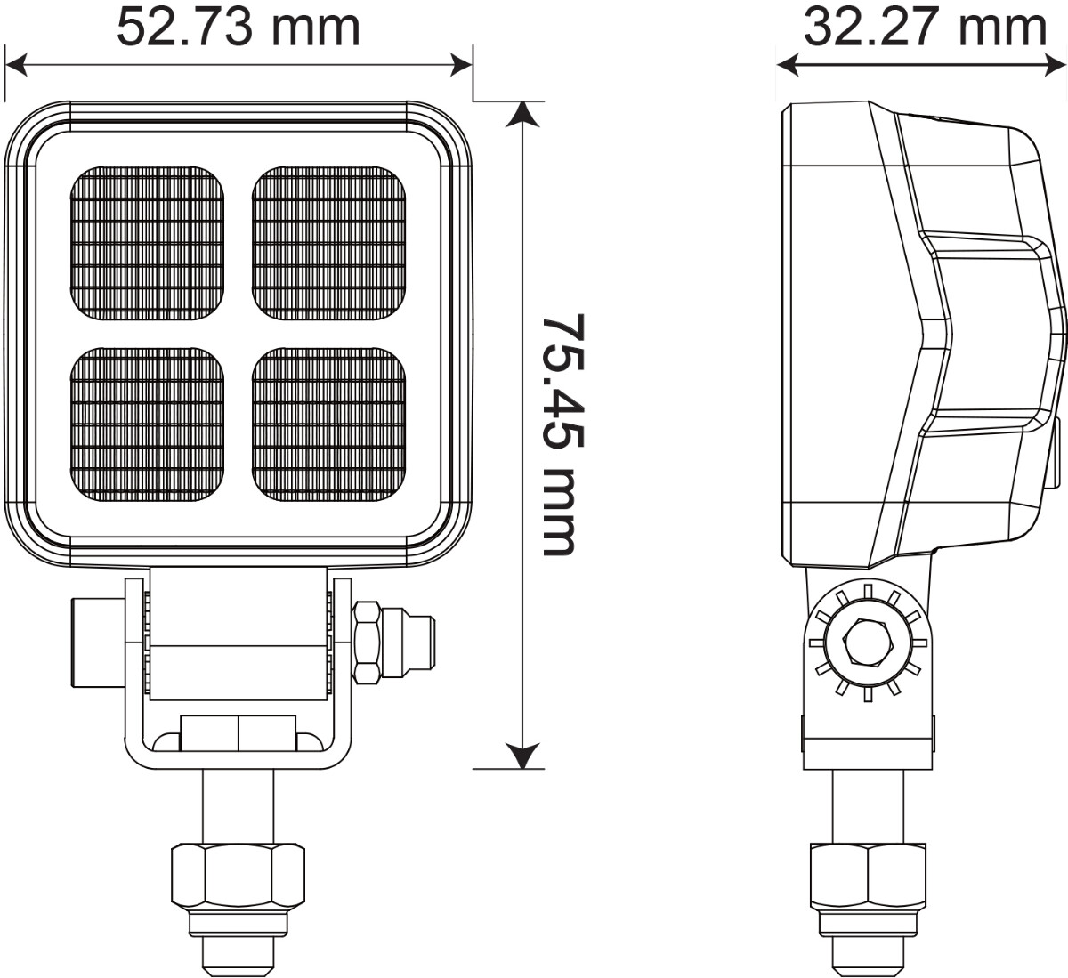 Kraftig kubeformet flom arbeidsslys fra 1852 med brakett i rustfritt stål.