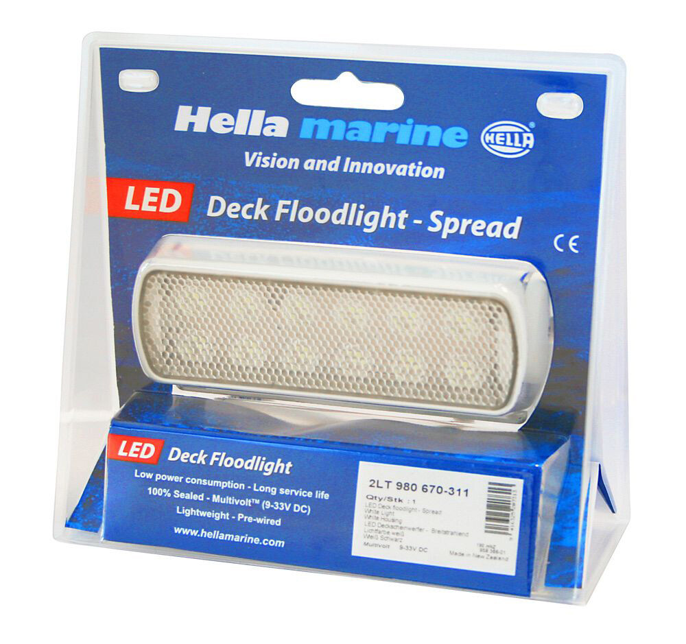 Hella Marine Sea Hawk er et kompakt og svært effektivt dekkslys. Det yter 200 lumen, og trekker kun 3 watt. Det egner seg godt til å lyse opp mindre områder på dekk.