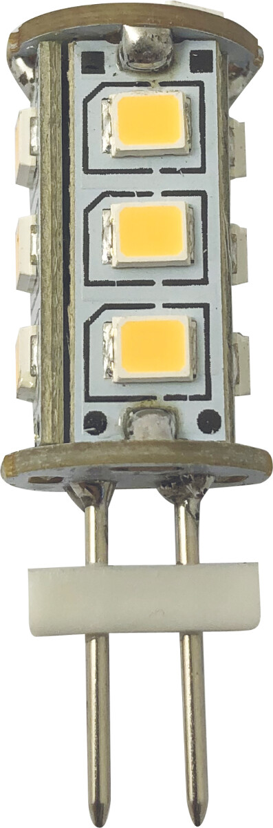 2-pakning med LED stiftpærer med G4 sokkel. G4 kjennetegnes ved at de to pinnene står 4 mm fra hverandre.