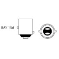 Pærene har BAY15D sokkel. Denne sokkelen kjennetegnes ved at de to små pinnene på sidene av soklene er plassert på forskjellige høyder, samt at bunnen har to poler. Se skissen i bildet for forklaring.