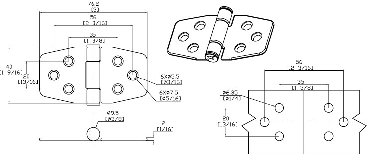 Friksjonshengsel 316, 76 x 40 mm (par)