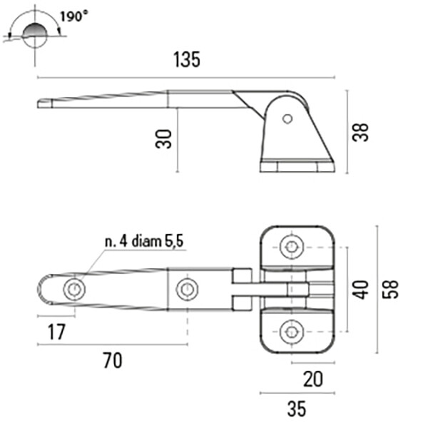 For 40 mm luketykkelse. Forkrommet messing, 135 x 58 mm.