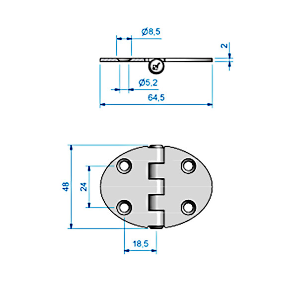 Roca Hengsel oval 64,5 x 48 mm SS316