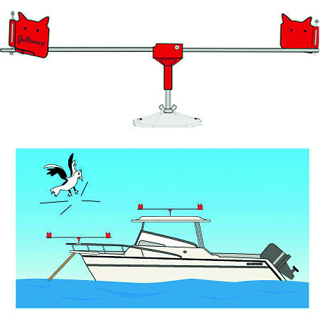 Er du plaget med etsende måkedritt på båt og kalesje? Gullsweep måkejager har gjennom 40 års erfaring, utviklet et produkt vi vet holder måkene borte fra båten Det patenterte dreiesystemet er så fintfølende at bare en bitteliten bevegelse i luften får den til å rotere. Den roterende delen tas enkelt og raskt av og på, og er sammenleggbar til halv størrelse slik at den lett kan lagres om bord.Måkejageren er veldig enkel å installere og trenger bare 2 skruer, det finnes også midlertidige monteringsalternativer om du ikke ønsker å skru den fast i båten. Produktet tåler vindstyrker opp til 50 knop/25 ms. Måkejageren må pakkes ned når du skal kjøre båten.