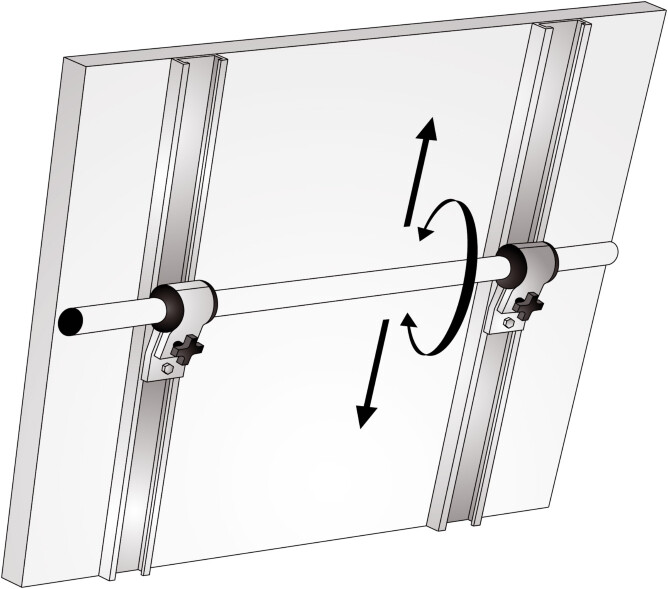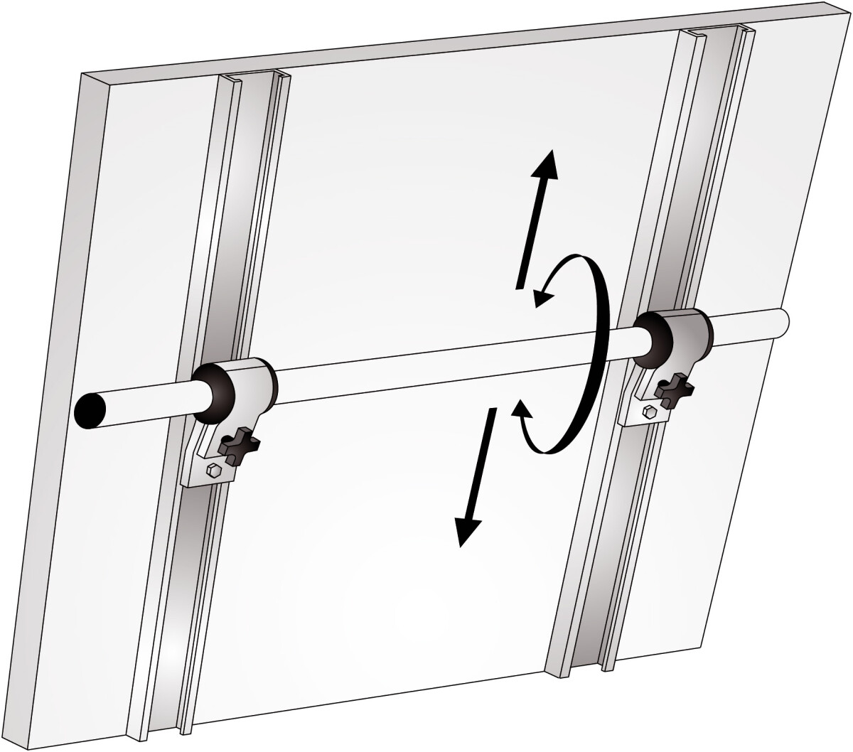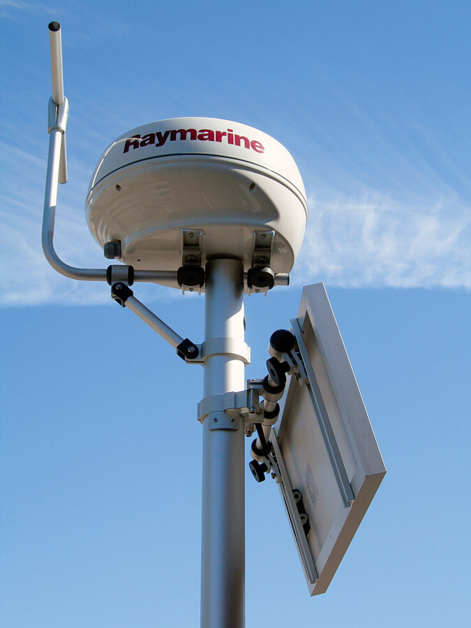 NOA solcellepanelholder i anodisert aluminium. Holderen kan vinkles horisontalt og festes i f.eks pushpit. Passer til alle NOA-fester.