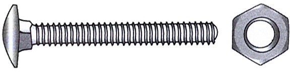Låseskrue DIN 603 i syrefast stål med sopphode og firkantgrep. Leveres med mutter DIN 934. Blisterpakket.