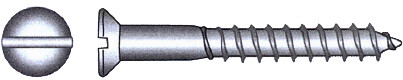 Treskrue DIN 97 i syrefast stål med senkehode og rett spor. Blisterpakket.