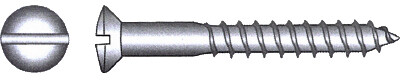 Treskrue DIN 95 i syrefast stål med linsesenkehode og rett spor. Blisterpakket.