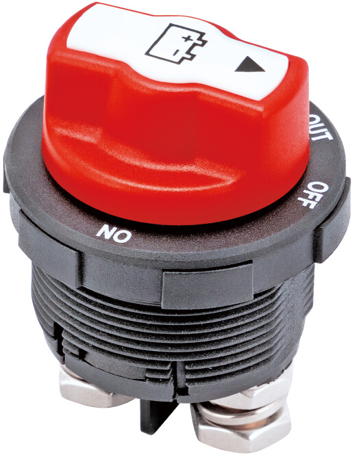 Liten og smart batteribryter laget for innbygging. Den har en utvendig diameter på bare 4,5 cm, og tar dermed svært lite plass. Bryteren har valg for on/off. Selve venderen kan tas av.