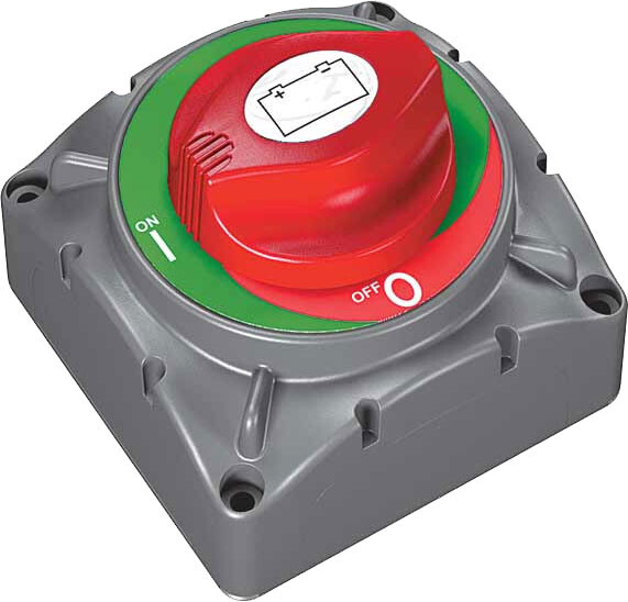 Hovedstrømsbryter fra BEP av meget høy kvalitet. Monteres flush ved å lage et 85 mm hull. Bryteren kan låses med langbøylet hengelås. Nøkkel kan fjernes. 600A konstant. 2500A/15 sekunder. IP=67. Max = 48V DC.