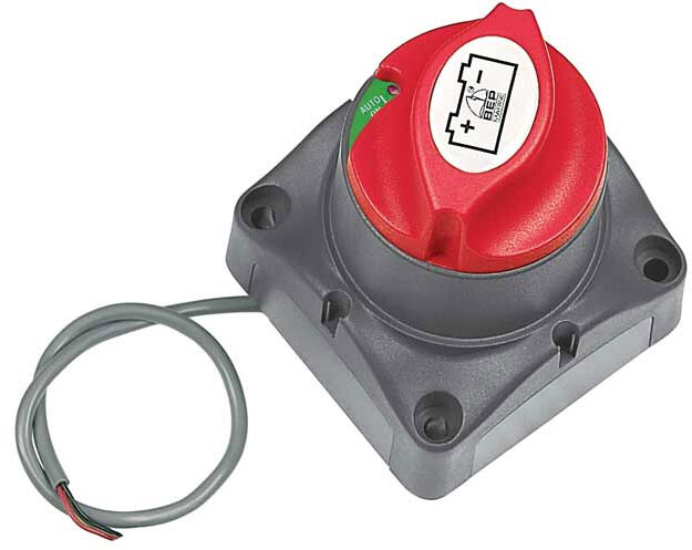 Motorisert hovedstrømsbryter 12/24V i høy kvalitet fra BEP. Kan fjernbetjenes av bryter/nøkkel ved for eksempel styreposisjon. Max = 32V DC.Konstant: 275 A