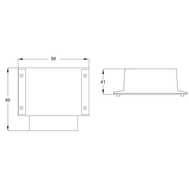 - Ytre mål: 89 x 99 x 41 mm (se bilde for målskisse)