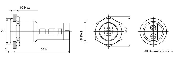 - Utskjæringsmål: 19 mm