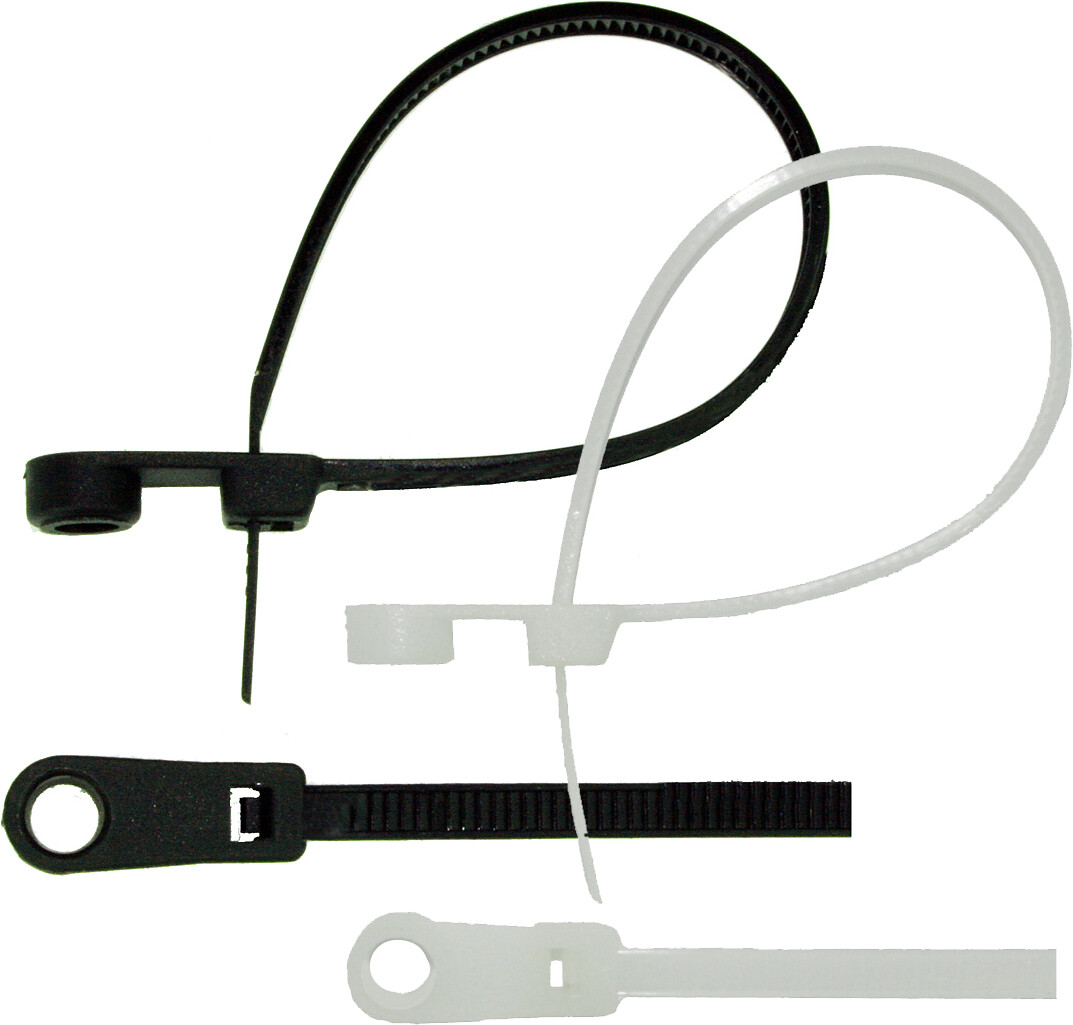 Festestrips med skruehull i hvit eller sort nylon. Motstandsdyktig mot korrosjon og syre. Kan brukes i temperaturer fra -35°C til 85°C. Stripsene festes ved hjelp av skruehullene etter at kabelen er stripset.