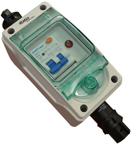Landstrømssentral med sikring og jordfeilbryter. Enkel installasjon, plug&play.