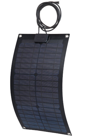 Semifleksible lettvekts solcellepanel som kan monteres på buede underlag, f.eks på et båtdekk. Perfekt til båt og campingvogn/-bil.