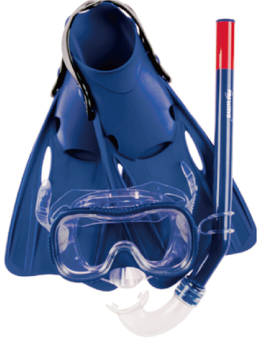 Moro snorklesett hvor man får masse for pengene. Med denne pakken får du alt man trenger til å utforske havet i ett samlet sett. Både finner, maske og snorkel kommer i mørkeblå farge.Dykkermasken passer ansiktsformen til de fleste barn og er laget av PVC. Masken er også laget med helt glass som gir et ekstra stort synsfelt. Den kan i tillegg enkelt justeres ved hjelp av stroppene.