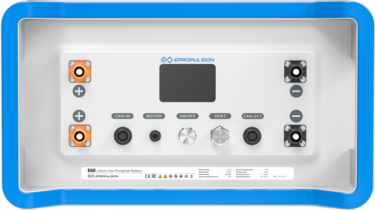 2. generasjon av ePropulsions elmotorbatterier. E60 og E163 gir deg topp brukervennlighet og svært lang levetid. Den perfekte partner til ePropulsions 48V elmotorer.
