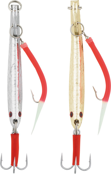En unik blyfri pilk som kombinerer tre velprøvde design for å fange flere og større fisk. Banan formen gjør de riktige bevegelsene. Den hamrede overflaten både ser bra ut og reflekterer lys på en unik måte. Gummimark i tillegg til pilken sikrer deg mange ekstra fisk - hver dag!