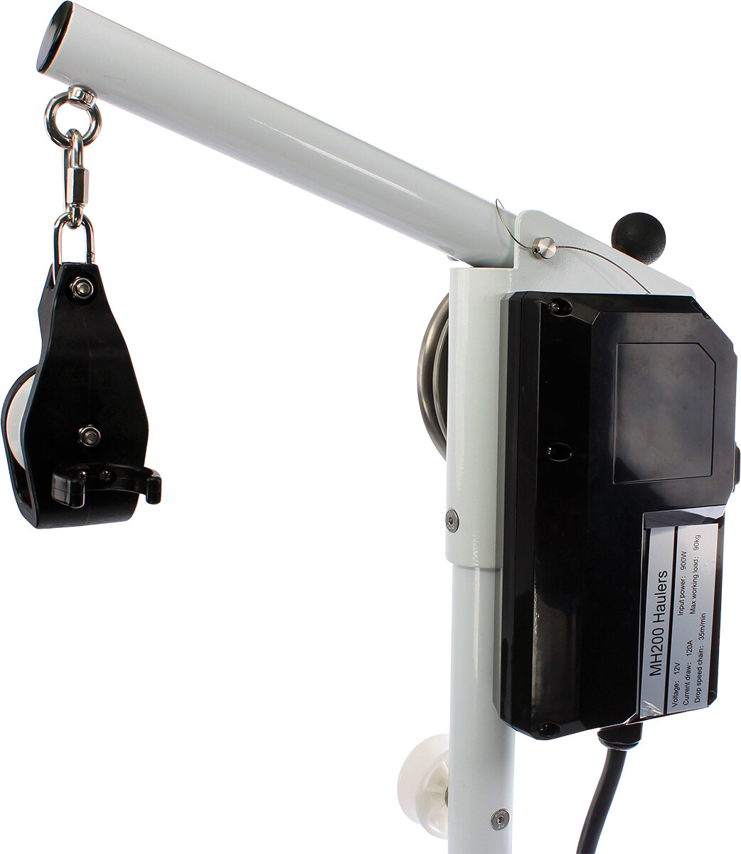 Sea-Lift MH200i er en kompakt og kraftig elektrisk teinehaler på hele 900 W. Den kraftige motoren gjør at du enkelt kan trekke større teiner.Teinehaleren er smart konstruert for å være så praktisk og brukervennlig som mulig. Den har svingbar aksling, slik at du kan svinge teinen inn i båten. Den kan også låses i ønsket posisjon. Tauhjulet har pressarm, som presser tauet ned i hjulet og holder det på plass.