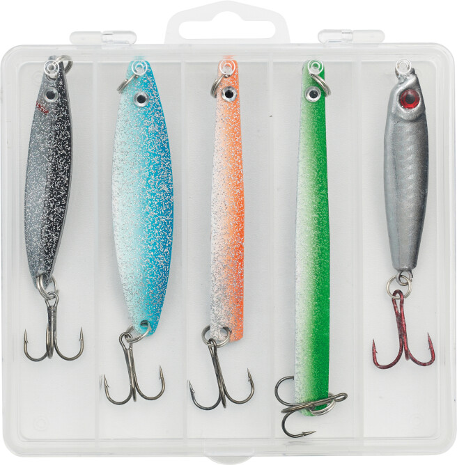 En flott mix av sluker med noen av de mest populære fargene, modellene og størrelsene. Med dette settet har du en sluk for alle forhold langs kysten. Inneholder 5 ulike sluker (12g/12g/18g/18g/26g).