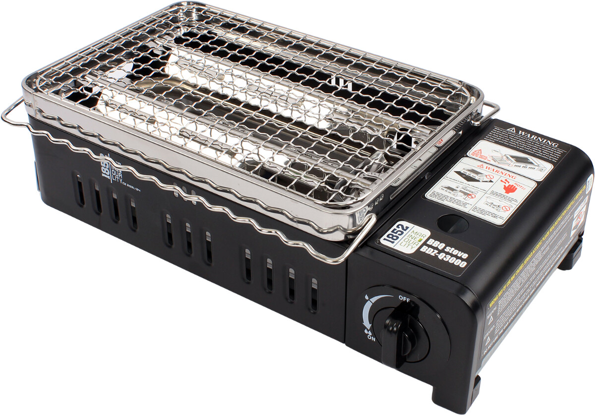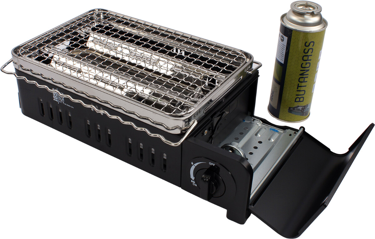 Smart gassgrill er en praktisk løsning for matlaging utendørs. Den benytter butangassboks som gir en effekt på opptil 2200 W. Med sin lette vekt på kun 1,55 kg og kompakte dimensjoner (388 x 214 x 96 mm), er den enkel å ta med seg på tur, camping eller til bruk på terrassen.Grillen leveres med både grillrist og grillplate, noe som gir fleksibilitet til å tilberede forskjellige typer mat. Den er designet for effektivitet og sikkerhet, og er CE-sertifisert i henhold til EN17476.