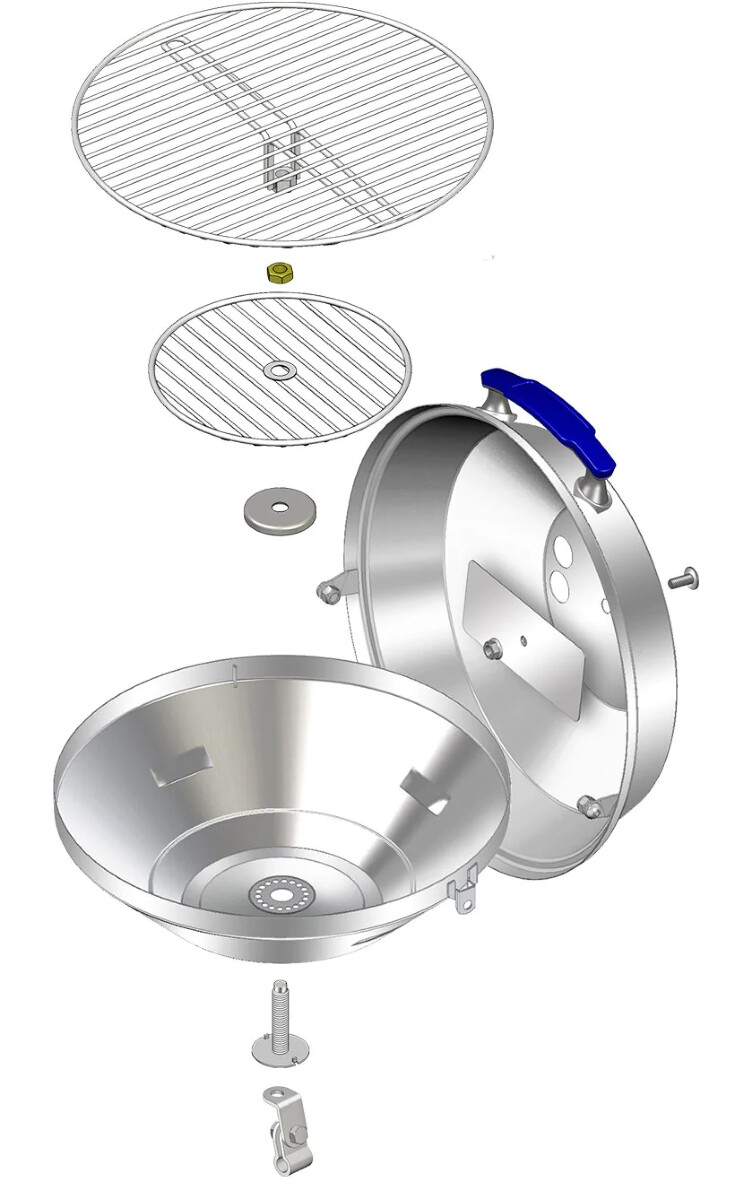 Magma Original Marine Kettle er en kompakt kullgrill som gjør det mulig å lage smakfulle grillmåltider uten å gå i land. Den har en romslig grillflate, samtidig som den tar liten plass når den ikke er i bruk. Grillen kan for eksempel monteres på båtens rekke, slik at den ikke opptar plass ombord. Monteringsbrakett for rekkemontering selges separat.Grillen er laget i høyglanspolert rustfritt stål. Lokket vippes opp og grillen kan dreies, slik at det fungerer som vindskjerm for grillen. Enkel montering og demontering.