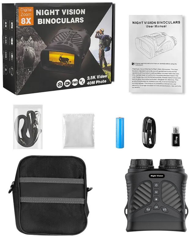 Nattkikkert med mulighet for foto og videoopptak. Kikkerten gjør det mulig å se 250-300 meter foran deg om natten. 4x forstørrelse, og 8x digital zoom gir et godt bilde av ting som befinner seg på avstand.