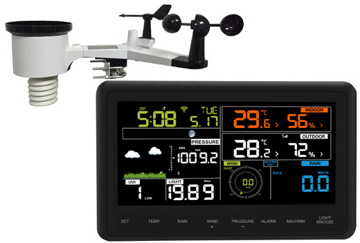 Med Pro 1 værstasjon kan du enkelt måle en mengde værdata ved hjelp av de trådløse sensorene og fargeskjermen. Overvåk både innvendige og utvendige temperaturtrender, fuktighetssvingninger, vindretning og hastighet, UV-stråling, barometertrykk og nedbør.Pro 1 fungerer som en personlig værstasjon (PWS), og kan kobles til et nettverk (via Wifi) av værstasjoner som du velger, for eksempel Weather Underground, Weathercloud eller Weather Observation. Når du gjør det, får du en oversikt over statistikken fra din egen værstasjon ved hjelp av bare noen få klikk, og muligheten til å se værdata på din smarttelefon! Se link under for aktuelle værdata fra Flak i Kristiansand.