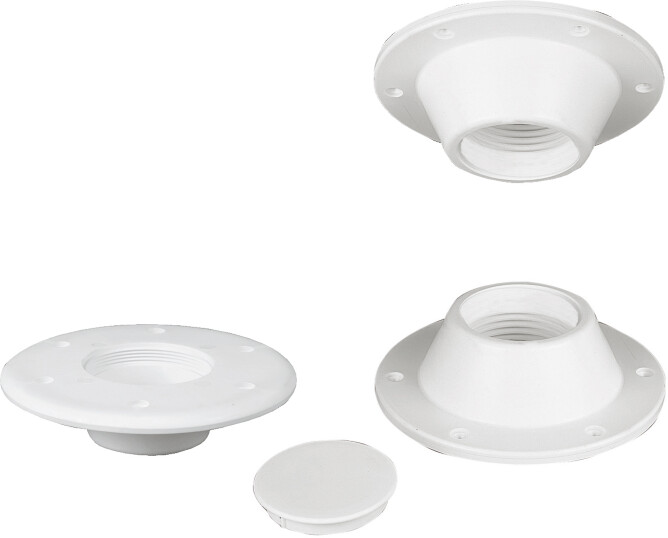 Gjenget brakett for bordsøyle 1038741/42. Leveres med deksel og pyntekopper i hvit plast for skruer.
