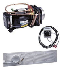 Kjølesystem for deg som ønsker å lage en plassbygd kjøleboks i båten. Systemet er luftkjølt, og bruker luft som blåses gjennom kondensatoren ved hjelp av en vifte. Det er den tradisjonelle måten å fjerne varme. Kompressoren kan monteres inntil 2 meter unna fordamperen ved hjelp av medfølgende, bøybare kobberrør. Det er viktig at kompressorrommet er godt ventilert, slik at kald luft kommer inn fra undersiden og varm luft slipper ut fra toppen.