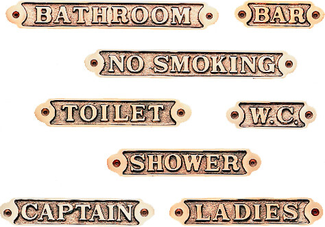 Skilt laget av massiv, polert messing.