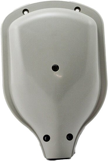 Grått plastdeksel til Isotemp varmtvannsberedere. Dekker elektriske tilkoblinger på fremsiden av berederen.