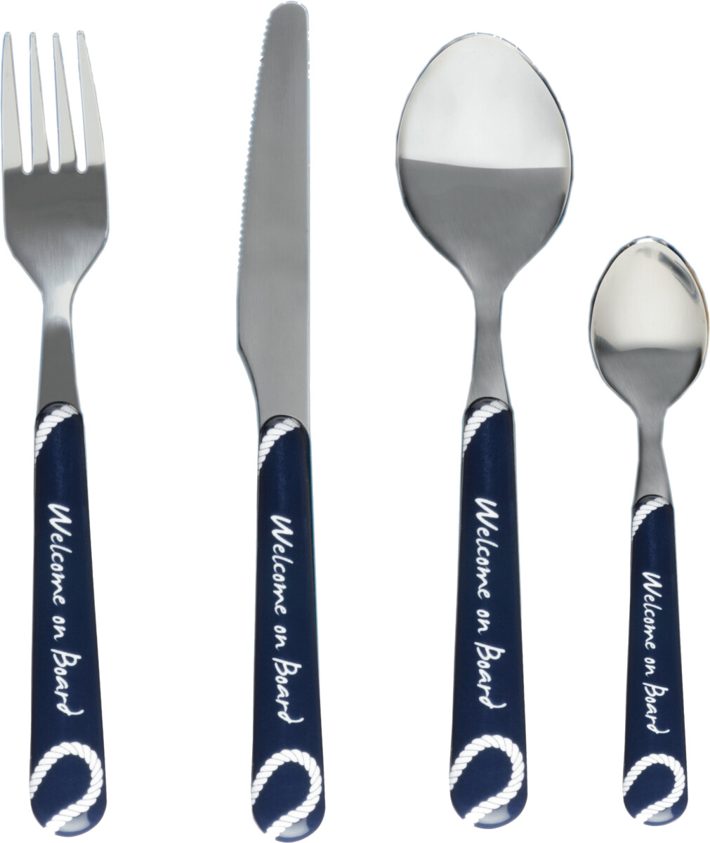 Welcome bestikksett (6 personer) er laget av rustfritt stål og ABS-håndtakene har nautiske striper.For å matche melamin-serviset, er bestikksettet MONACO samling essensielt for et attraktivt koordinert bord.