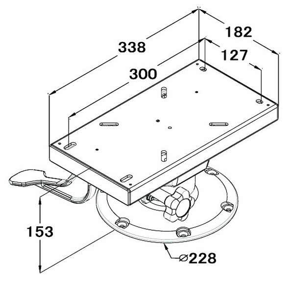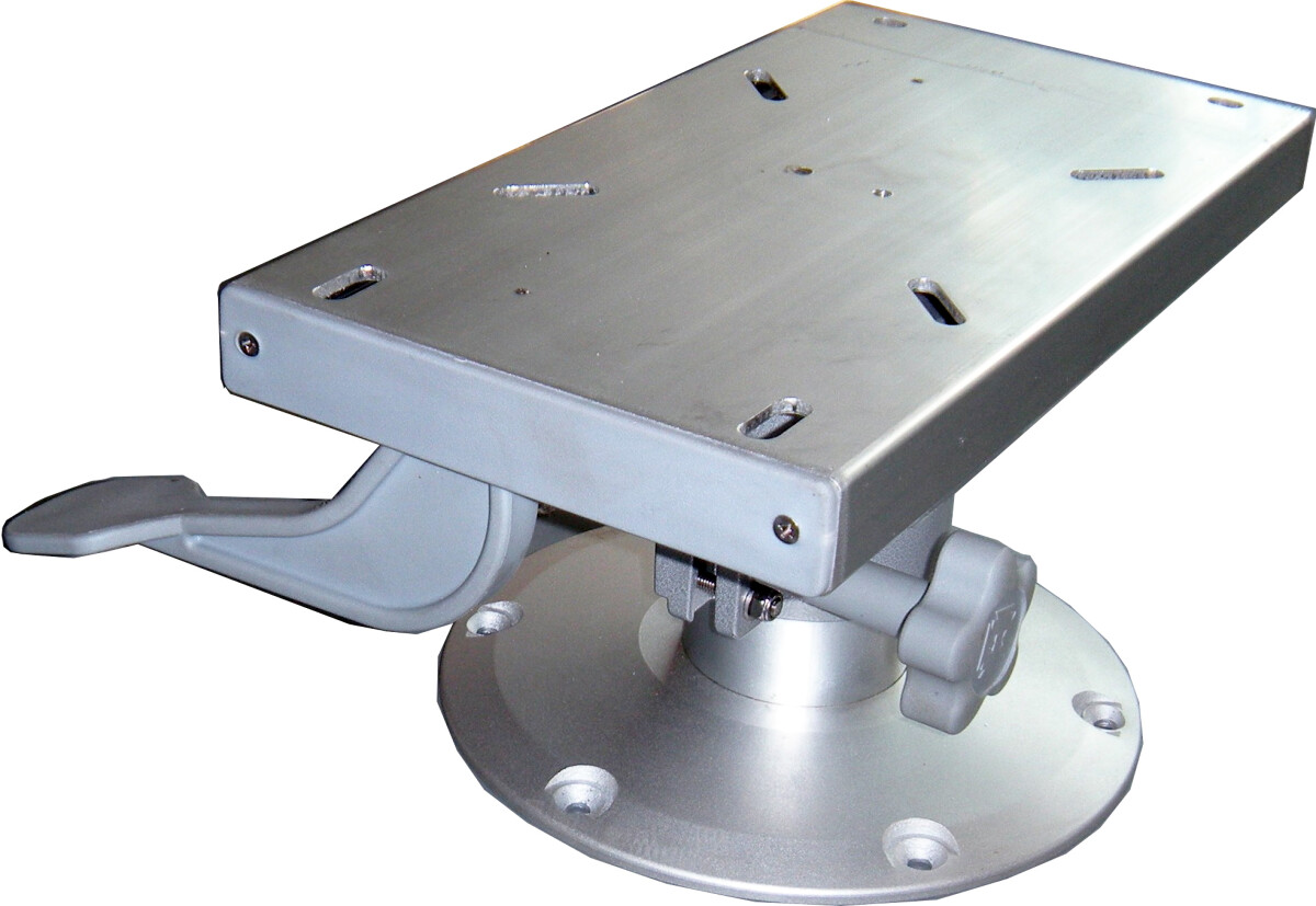 LOW15 stolsøyle med integrert glideskinne bygger kun 153mm, anodisert aluminium. 360 grader rotasjon. Passer perfekt for lav profil montering av stoler direkte på dørk eller støpte bokser/benker.