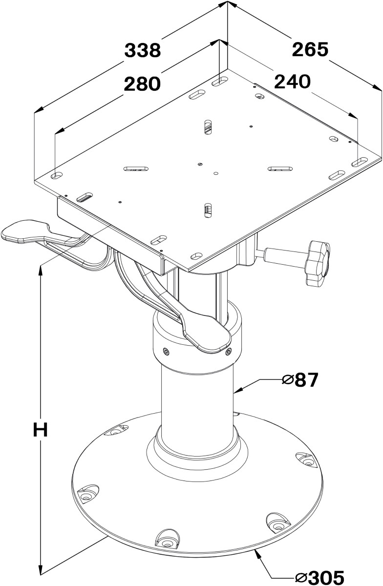 Stolsøyle SHD med gassregulering, ekstra bredde på glideskinne for optimal stabilitet .