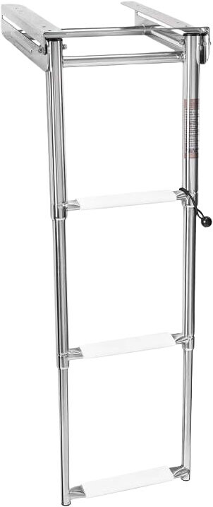 Teleskopisk plattformstige i syrefast stål med slide-funksjon. Monteres normalt under badeplattformen. Trinnene har rilleplast som gir høy komfort og godt grep. Et strikk holder stigen samlet når den ikke er i bruk.- Lengde sammenslått: 370 mm