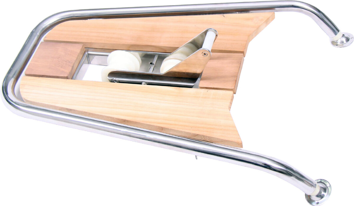 Baugspyd fra 1852 i syrefast stål og teak til motorbåt.