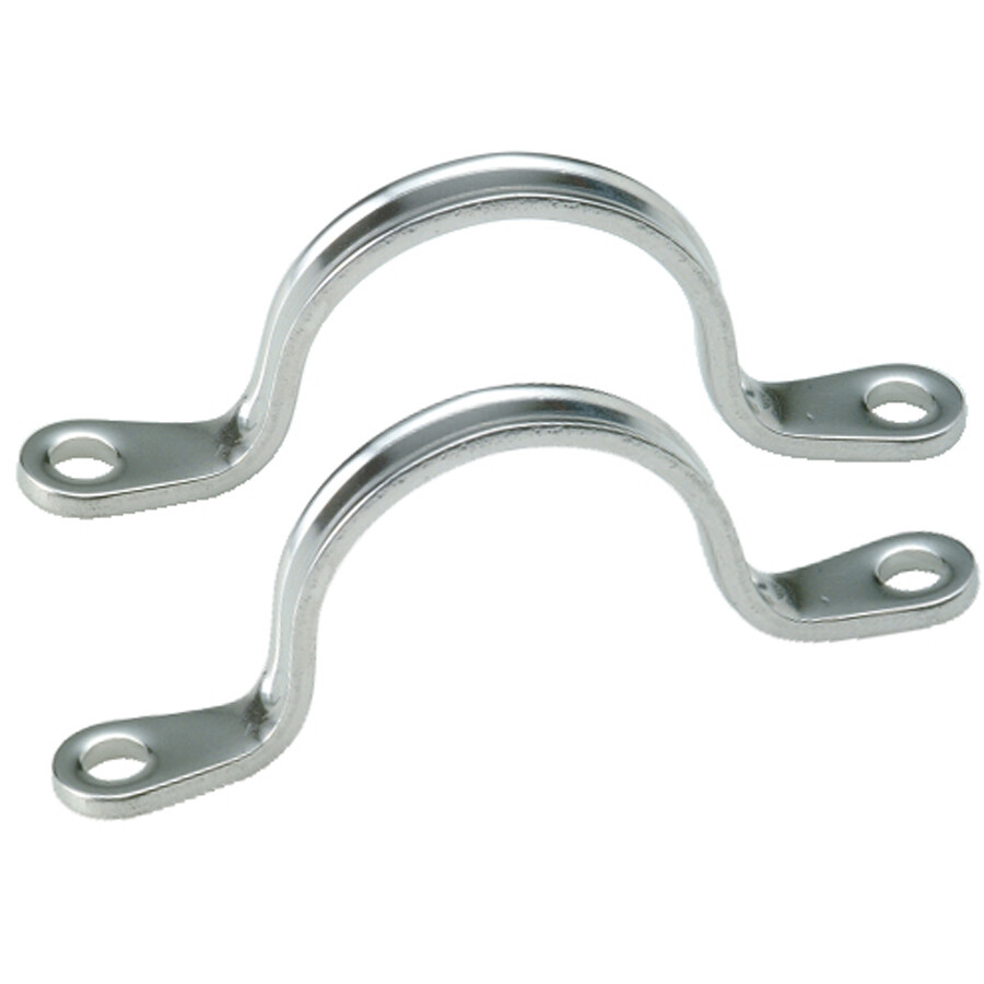 Pressede blokkhemper (bøyler) til feste av blokker og tau. Høyglanspolert, rustfritt stål.